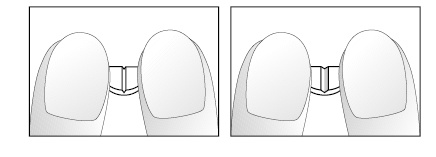 - Helyezze két mutatóujját a tablettára az egyik bemetszéssel párhuzamosan, majd nyomást gyakorolva törje ketté a tablettát (1. és 2. ábra).